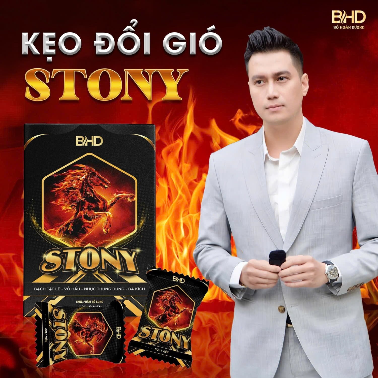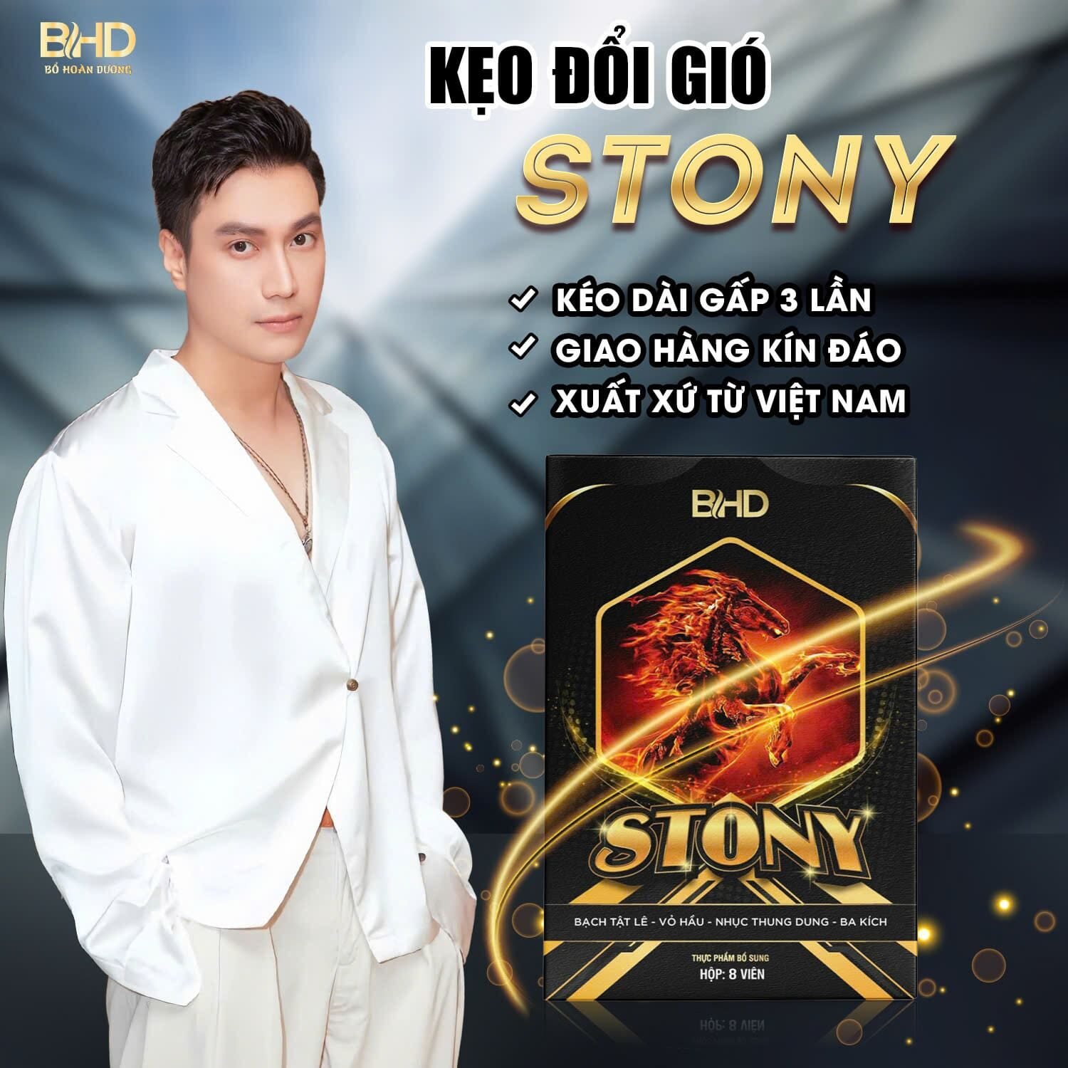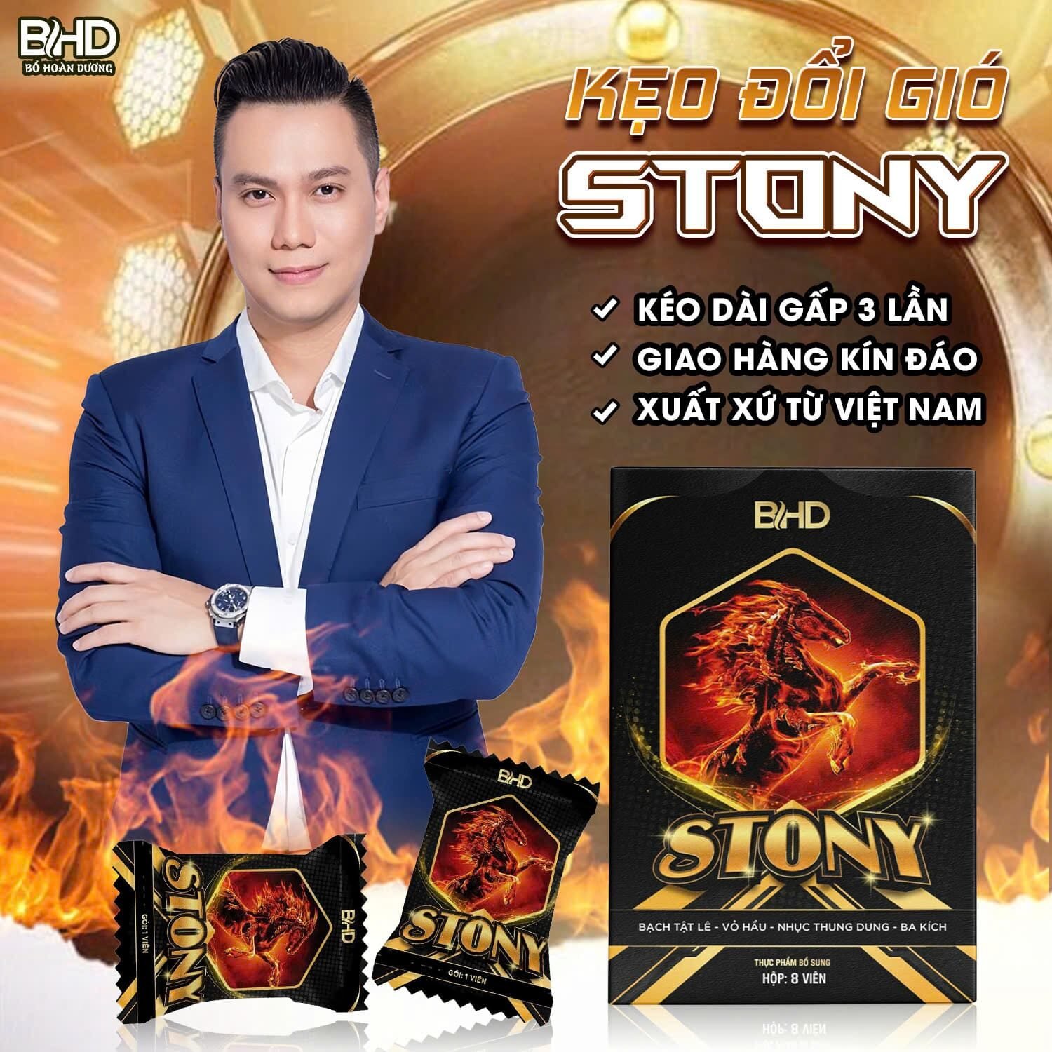 Kẹo đổi gió Stony là sản phẩm hỗ trợ sức khỏe, không phải thuốc, có tác dụng bổ thận tráng dương, hỗ trợ cải thiện chức năng sinh lý nam.