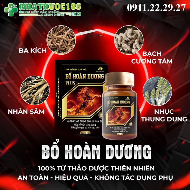 Viên uống tăng cường sinh lý nam giới Bổ Hoàn Dương Plus là sản phẩm hỗ trợ sức khỏe được nhiều nam giới tin dùng nhờ tác dụng nổi bật trong việc cải thiện chức năng thận và tăng cường sinh lực. Sản phẩm được bào chế từ các thành phần thảo dược kết hợp vi chất cần thiết cho nam giới, mang lại hiệu quả an toàn, lành tính.